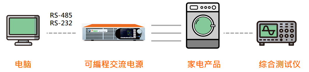 Preen擁有完善的交直流電源解決方案,使用者可輕松建立多組自動化測試流程,滿足單機即可測試多種家電產品的需求,不僅提供純凈的正弦波、良好的電壓/頻率穩定率及波形失真度外,也扮演電源轉換的角色,提供待測物所需的電壓及頻率,并做拉偏試驗確保其可靠性,而電源本身具備逆灌保護功能,可承受一定的逆灌能量,致力于提供安全、高質量、高性能的測試電源產品。(延伸閱讀:家電制造之市場應用)